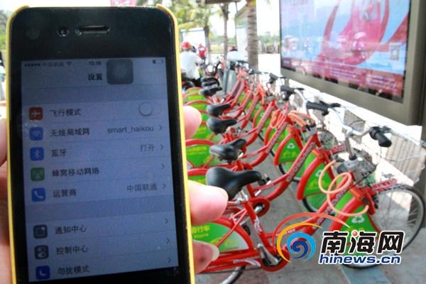 海口8个公共自行车服务网点处可连接免费WiFi (南海网记者 陈望 摄)