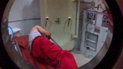 11时,在哈医大一院急诊部的高压氧仓内,记者看到了正在接受治疗的孙庆先,他身着红色工作服,已恢复意识。据他的工友介绍,当时孙庆先在井下,随后感到不适。