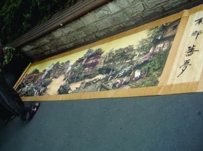 昨天上午,一名中年男子在南京市中山北路40号附近的人行道上,将一卷古画一字排开摆在地上,向过往的行人兜售。一幅装裱古色古香,尺寸长达3米多的《南乡旧梦》,引起多位过路市民驻足观看,欲解囊相购。不过,一名路过的行家一眼就看到是假货,这名男子尴尬地收取画作逃离。