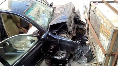 司机一脚油门撞上墙身亡 车体前部完全变形(图)
