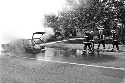 消防员用水枪对起火车辆进行灭火 供图/顺义消防