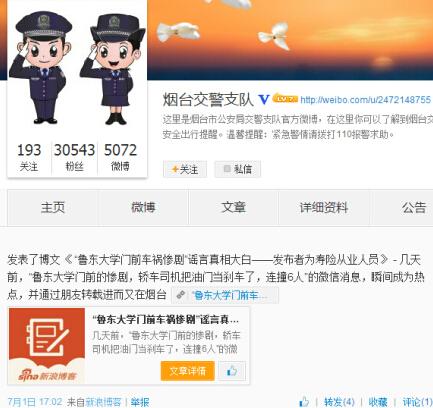 烟台某保险公司职员造谣“大学门前车祸连撞6人惨剧”
