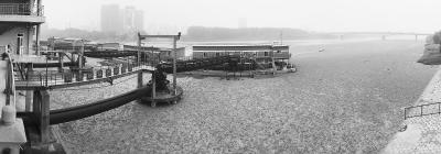 昨日,记者在宗关水厂看到,汉江上的取水点趸船被水白菜包围。工作人员介绍,取水点在水面2米以下,不会对饮用水造成影响 。记者 周超 摄