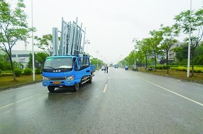 一辆限高2.5米的货车,竟然装载了高达4米多的铝合金门窗架,好似驮着一个大铁塔。行驶到江宁苏源大道附近时,超高的货物挂到路上电线,将电线杆连根拔起,造成附近企业大面积停电。企业负责人等不及供电部门抢修,就带领自家的水电工进行了现场维修。民警对驾驶员处以100元的罚款。(焦哲 摄)