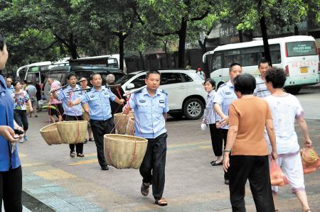 湖南邵阳城管挑箩筐替瓜农运果蔬 便民执法获赞