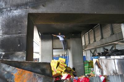 据附近商户称,起火地点为批发酸奶、饮料的仓库,起火原因可能是冰箱短路引起。昨日中午,起火仓库已经被贴上封条,引燃的高架桥墩已被熏黑,几名工人在清理现场。地铁部门还派出工人对高架桥上的桥墩进行检修,其中一名工人称,6日晚的火灾并没有影响高架桥的结构,更不会影响地铁轨道的运行安全,“没事,只是烧黑了。”