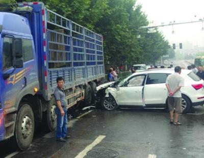 奥迪拦腰撞上货车。任国勇 摄