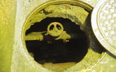 “社区和市政工程管理处都清楚这个坑的深度在七八米。”一位住户指着单元门旁的一口井说。记者顺势看去,这口原本用来控制自来水管道和暖气管道的井下已经明显塌陷,从井口看下去,目测有6至7米深,里面面积有多大还看不清楚。