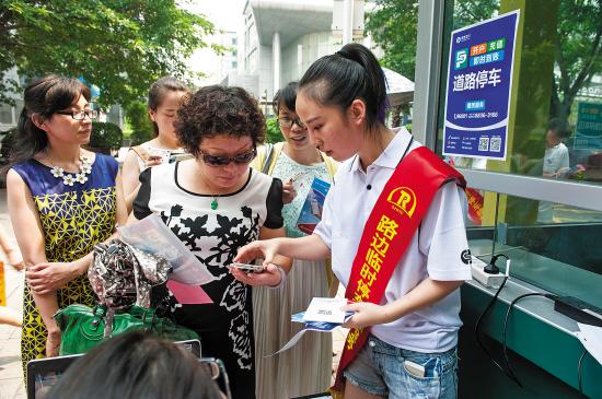 市民在服务点办理停车收费 图/羊城晚报记者 王 磊