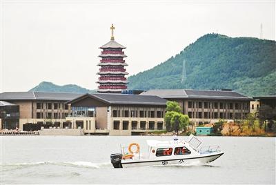 昨日,警方快艇在雁栖湖上巡逻