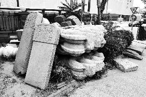 此外,在该馆的西南角的草坪里还堆有15块石碑碑身,虽然摆放相对整齐,但也未加任何保护叠放在一起。“这些碑堆在这儿有段日子了,既然是文物就应该妥善保管。”一位路过的市民说道。