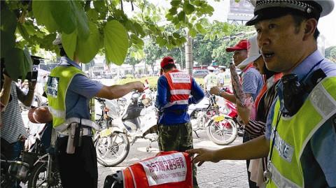 电动车交通违法者将在路面进行一个小时的交通文明安全引导活动。南国早报记者 王艳群摄