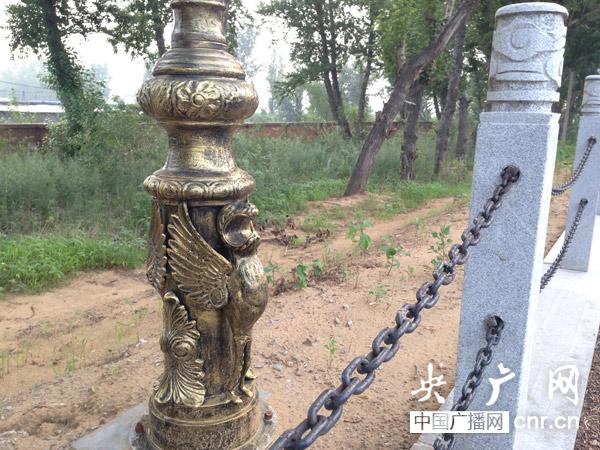 记者分别乘坐两辆出租车对“土豪大院”的占地面积进行两次测量,公里数都显示,南北围墙长0.8公里,东西围墙长0.5公里,占地面积约600亩。据了解,这个土豪大院以“沈阳绿嘉泓舍农业观光项目”立项,但记者在现场只看到一个鱼塘,并没有多少与农业相关的项目。土豪大院的主人赵国富说,这个大院的土地手续还没办下来,他目前只是完善了旧的建筑。