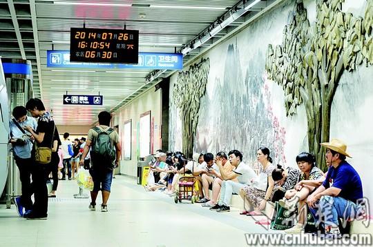 最近几天,记者探访地铁2、4号线的多个站点看到,在宝通寺、洪山广场、汉口火车站等站点,均看到不少纳凉的市民。