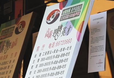 昨日中午,烤肉店用招聘广告遮挡住“违法行为公示书”。