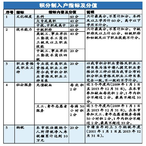 指标减为5项,总积分达60分即达“入户门槛”