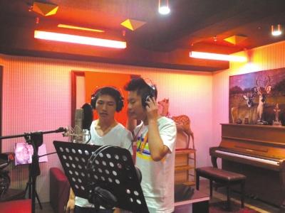 柳艳兵和易政勇正在录歌。京华时报记者李莎摄