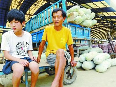 辛安渡农场实验站菜农张清森舍不得砍掉冬瓜,他选择用车子“驮”着冬瓜去蔬菜批发市场卖。他原本打算依靠今年卖冬瓜的钱,给16岁的儿子交学费。