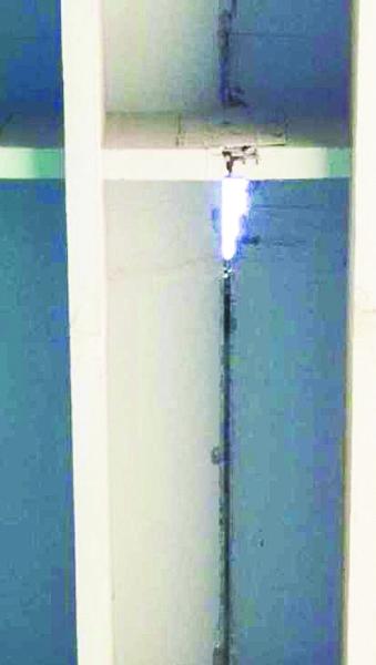从桥下向上看,可见桥面有个大洞。网友@飚鎶供图