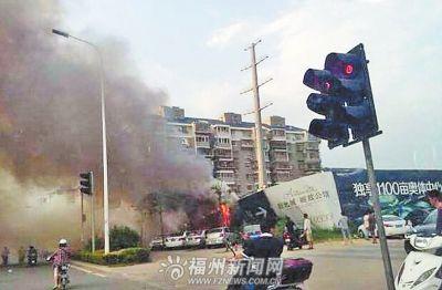 福州广告牌起火只剩焦黑骨架 烧焦旁边汽车(图)