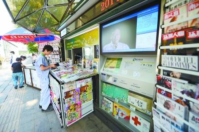 位于双井地铁站西北口的智能报刊亭,新添了播报天气、银行卡实时查询、缴纳水电费、网上购物代收等数字化功能。 本报记者 和冠欣摄