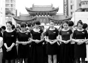 昨日10点整,昆明市民在忠爱坊为地震遇难者默哀。 记者廖斌摄