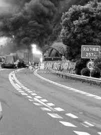 高速交警赶到现场后封锁了该路段,闽侯消防中队的官兵冲入火场,花了约半小时将大火扑灭,不过3辆大货车已被烧得只剩骨架。