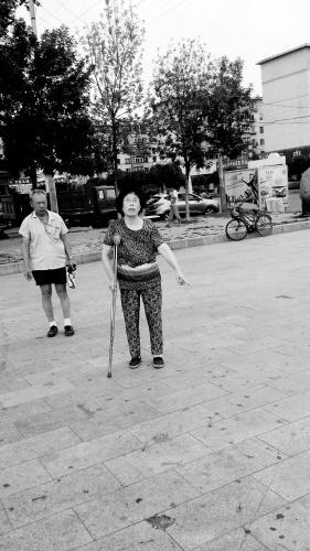 “8月8日下午5点多,我和老伴离开家,准备坐113路公交车到儿子家住。我们准备从113路终点‘富民街泉园广场’上车。当我们经过文富北路的‘富民园’内时,突然被广场上一位40多岁打球的男人撞倒。”