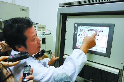 沿着大坝向东行约3公里便是国家地表水水质自动监测网丹江口水库胡家岭监测站。临近下班,负责人柳根仍在忙碌中,“这里的监测设备都是自动运行的,下班前我再看看监测的水质情况是否有异常。”记者看到,在一间面积约15平方米的屋子里,5台一人高的设备正在运行,显示屏的数字在不断跳动,不时可以听到“噗噗”的水泵抽水声。柳根说,它们每隔4个小时自动抽取距离水面5米处的水样进行监测,监测结果直接传输到环保部中国环境监测总站。记者看到一台控制柜设备上显示了最近一次监测的各项水质指标,其中氨氮浓度是0.16毫克/升。“这一项的国家一级饮用水标准是0.15毫克/升,这说明丹江口的水质已近一级了。”柳根说。