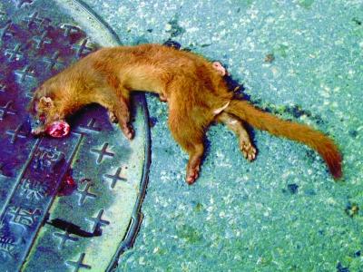 南京多只黄鼠狼街头“漫步” 1只受惊被车撞死(图)