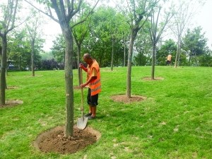 昨天,北京晨报记者来到六公主坟村整治项目现场。5月,这里还是环境脏乱的四元桥汽配市场,6月末记者来这里探访,这里还是一大片施工工地。昨日,景色怡人的望和公园已然初具雏形,工人们正在进行最后的绿化、装饰,两处有坡度的休闲滑板区正在施工。