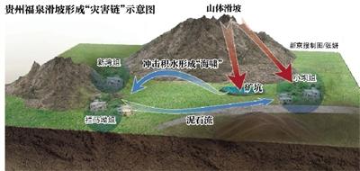 贵州省地质环境监测院总工程师赵国宣说,像这样由巨大滑坡形成“灾害链”冲击邻村的情况十分罕见,这成为地质灾害预警预防的一个“盲区”。