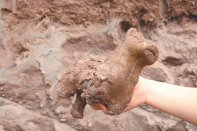 值得一提的是,在出土的文物当中,除了有陶罐的残片外,还有较为常见的东汉陶俑,不过,出土的一只陶狗备受关注。记者看到,这只陶狗短短的四肢,耳朵呈三角形,嘴巴略微张开。用当下流行的网络语言描述,看起来“萌萌哒”。兰廷波说,以前隆昌曾出土过陶猪、陶鸡,现在出土的陶狗和这座东汉崖墓的发掘,为研究丘陵地区汉葬文化、风俗习惯等提供了更为详实的资料。