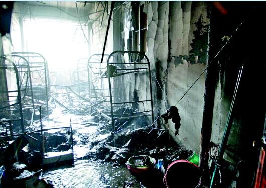 10日下午1时30分左右,历下区明湖小区东四区11号楼内一单元员工宿舍着火,其中一间宿舍过火严重。所幸事发时员工都不在宿舍。