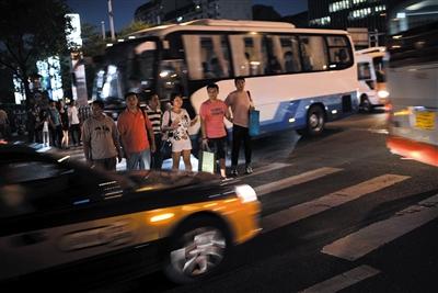 行人4次让车 过马路用6分钟