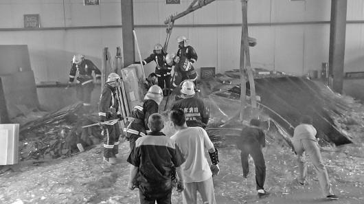 救援人员正在抢救被玻璃埋压的工人。 本报记者 高祥 通讯员 陈健 摄
