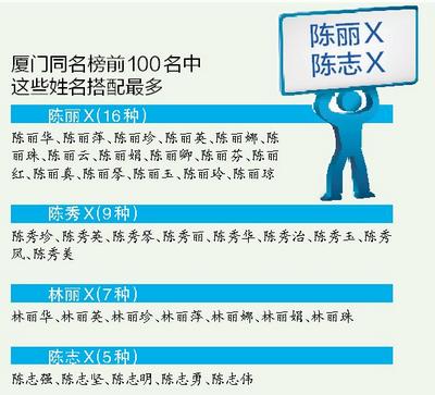 厦门市民打开手机通讯录,输入“丽、明、琳、志”作为索引,很可能找到好几个条目,无法快速找到联系人,这些条目中,“美丽”和“聪明”也可能是重复最多的名字。