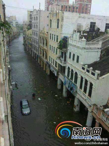 海口骑楼老街遭水淹 街景仿若“海南威尼斯”