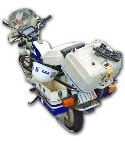 这辆已报废警摩的原使用者是雨花新村司法所所长,但现在却被肇事者开着。 梅建明 摄