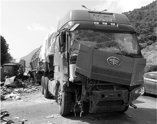 半挂车逃窜撞上前方车辆