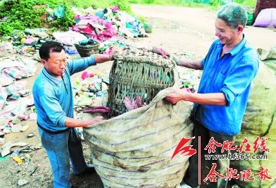 如今,这个拾荒村内还剩下4人在坚守,他们分别是42岁的四川仪陇人赵以伦和他的妻子邓蓉,还有48岁的仪陇人吴勇胜等。10年前,他们跟随老乡来到肥东龙泉山,干起了垃圾填埋场拾荒者的营生,如今他们在这里捡拾垃圾已经有10年。