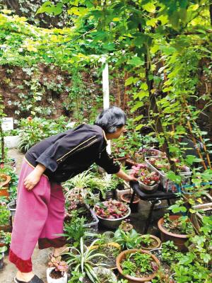 为了放松心情,在照顾丈夫的同时,张云芳开始学着养花