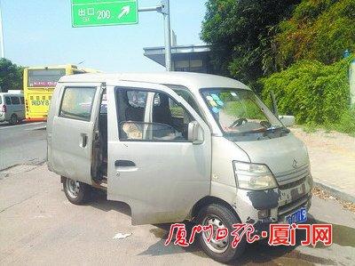 小面包车的前部有些焦黑。