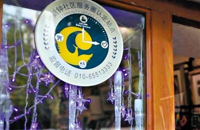 “一刻钟社区服务圈认定站点”贴在一家商铺的门脸上。17创意机构供图