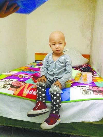 第一期化疗结束后,陈浩犯了难,因为兜里一分钱都没有了,接下来孩子去哪儿,该如何治疗,他不敢去想。本报记者在得知了陈浩的难处后,帮他联系了儿童希望基金会。“幸亏基金会的热心人帮忙,给我打了1000元钱。”从儿研所出来,沿着北边的雅宝路一直向西,沿着二环边再往北走100米,有一个地下宾馆,陈浩和女儿就暂时住在这里。屋子很小,不足5平方米,没有窗户,只有头顶上的一台风扇能起到空气流通的作用。