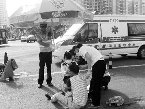 9月18日,海口市滨海大道与丽晶路交叉口发生一起交通事故,一辆小轿车由北向西行驶过斑马线时,与一辆电动车相撞,导致电动车司机摔倒受伤。海口交警秀英大队民警姬卫东正好巡逻至此看到这一幕,他立即拨打120急救电话。在急救人员到来之前,他组织警力将伤者扶送至安全地带,见受伤司机在高温下汗流如注,他又找来太阳伞为伤者遮阳,同时询问伤者受伤情况并安抚其情绪。急救人员赶到后,他继续撑伞配合急救人员救助受伤者,经过简单处理后,伤者被送往医院。