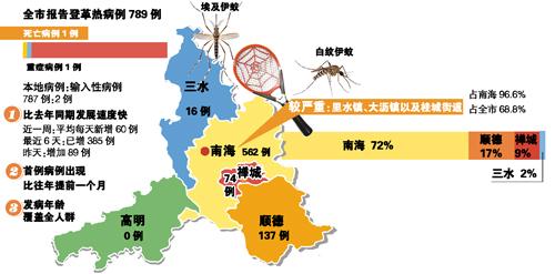 佛山报告登革热病例789例 其中死亡病例1例(图)