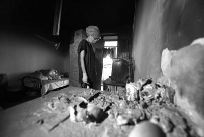 一住户正在清理起火房间。京华时报记者陶冉摄