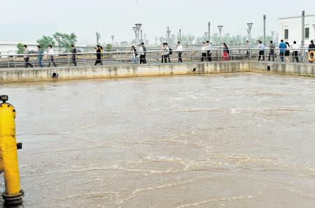 在长沙金霞污水处理厂,来自育才小学的校园小记者们兴致勃勃地观看污水处理的各道流程,感受节约用水的重要。