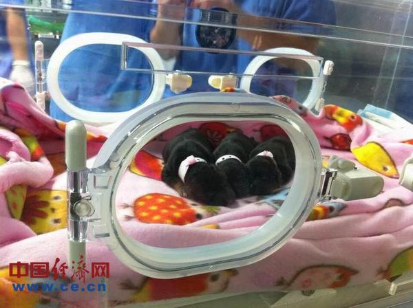 三只一模一样的小嘉玛分别取名“嘉博”、“嘉雅”、“嘉秀”。中国经济网记者 顾阳摄。